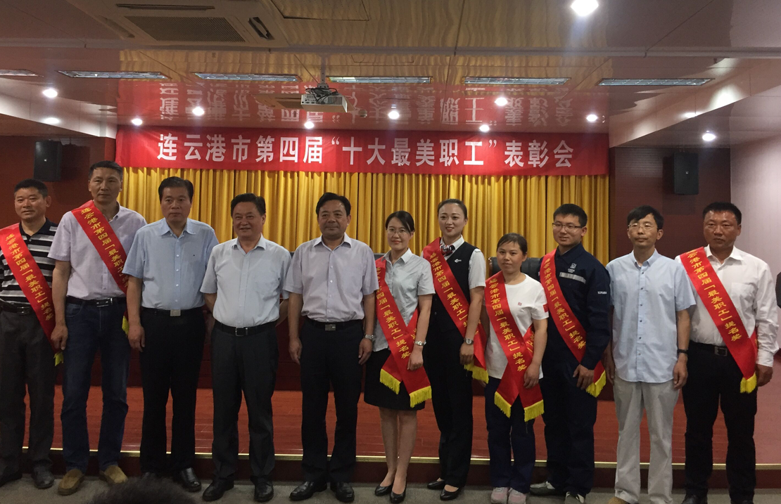 近日,在連云港市第四屆港城“十大最美職工”表彰會(huì)上,日曬制鹽新河分公司八班班長(zhǎng)祝星星榮獲“十大最美職工”提名獎(jiǎng)。在表彰會(huì)上,市總工會(huì)主席鄭平、丁維杰書記、宣傳部副部長(zhǎng)李超領(lǐng)導(dǎo)與獲獎(jiǎng)人員一起合影留念。