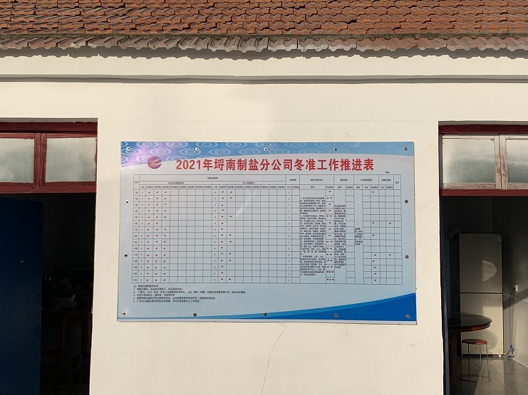 冬季是日曬制鹽收儲(chǔ)鹵水、扒土塘、整理灘場(chǎng)文明的最佳時(shí)期,也是為2022年工作起好頭、邁好步的關(guān)鍵時(shí)期,為更好落實(shí)“冬準(zhǔn)”大會(huì)會(huì)議精神,12月6日上午,埒南制鹽公司制定冬準(zhǔn)工作推進(jìn)表,張貼在公司辦公區(qū)域墻面上,成立“指揮部”掛圖作戰(zhàn),打好冬準(zhǔn)戰(zhàn)役促。