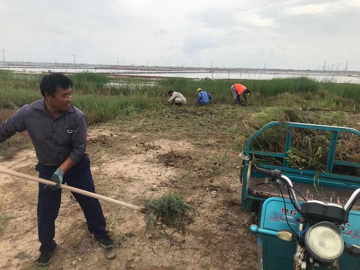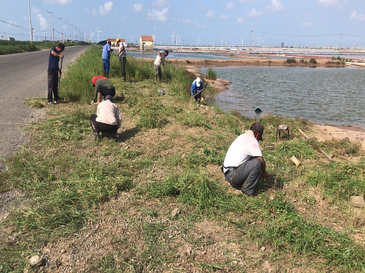 埒南制鹽分公司開展灘場文明建設,對各班灘場文明進行集體整頓。完成塑料布整理、清理溝道、值班室整理、鹵臺雜物清除等工作,主要是清理灘內雜物雜草,對值班室、大小機房附近雜草進行清理。并對扒鹽機械進行統(tǒng)一保養(yǎng)、擺放,為即將到來的秋扒奠定基礎。圖為工人正為灘內雜草進行清理。(孟然)