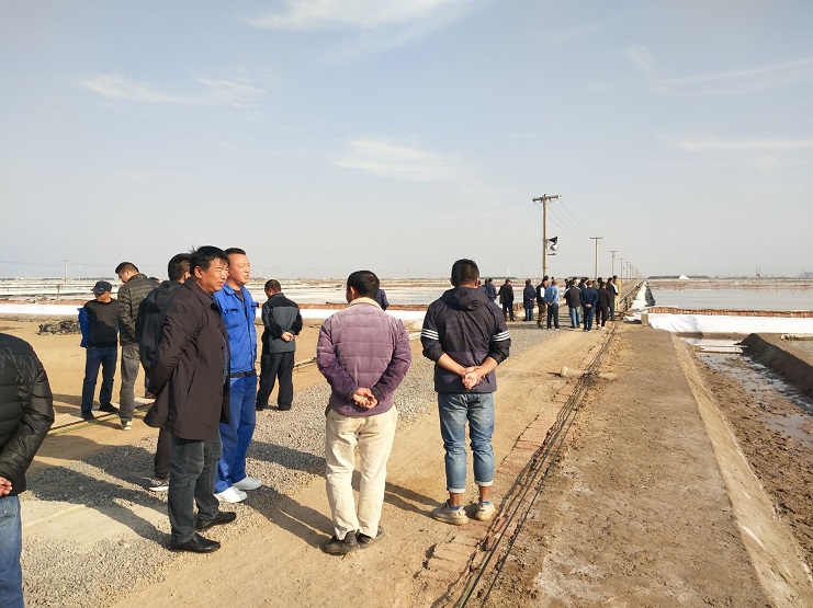 新河制鹽分公司經(jīng)理安樹林帶領(lǐng)大家參觀七班灘場文明建設(shè),在參觀現(xiàn)場,經(jīng)理安樹林對新河參會班組提出要求:今年冬準工作各班組要抓頭抓早抓實,嚴格冬準各項工作標準,按時間節(jié)點開展各項工作;塌陷的池堰進行重新修補整理,倒塌嚴重池堰把土工布揭開重新修整;對副廩基、咸溝道、下馬格窮制鹵,中高級鹵水及時的進行回收存儲;土塘清淤二節(jié),做到周邊淤泥踏平踏實,邊口整齊上線,嚴格按照公司標準完成;做好鹵水收儲工作,全灘越冬鹵水不得低于45000立方,窮制鹵2000立方;對走過鹽的廩基按標準完成,做到內(nèi)外沒有雜物,副廩基沒有小鹽面,廩基外圍要有排水溝道。