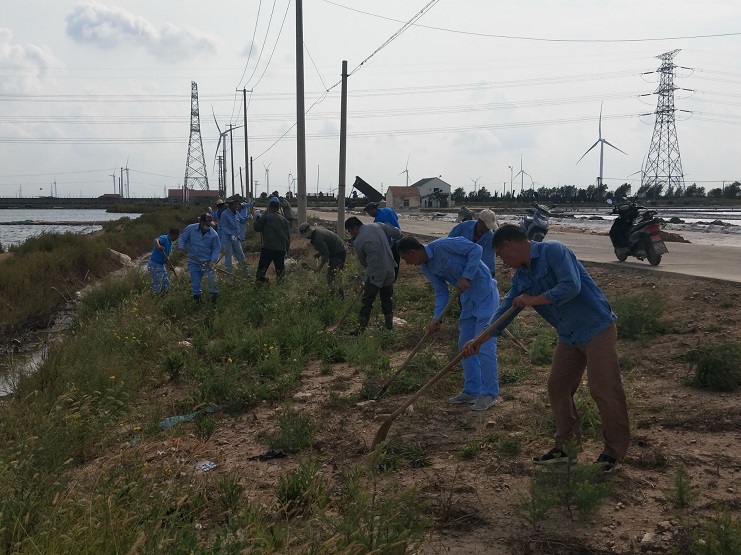 各班組抽調(diào)生產(chǎn)骨干由班長親自帶隊(duì),對0班一期道路兩邊的雜草、廩基、副廩基、大池道、門面溝,值班房等進(jìn)行了整治。大大改善了灘容灘貌,新河員工們發(fā)揮了不怕臟不怕累的精神,并努力推動(dòng)養(yǎng)成人人愛護(hù)環(huán)境,人人保護(hù)環(huán)境的良好氛圍,使新河制鹽公司環(huán)境整治工作再上一個(gè)新的臺階。(李明佰)