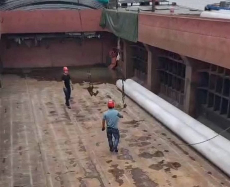 “要先將掛鉤小心地分開,然后將掛鉤分別掛在管樁的兩頭,將它吊起的時(shí)候,要注意安全……”,碼頭掛鉤工人一邊演示一邊說。宵洋公司全體管理人員在一旁聽得很仔細(xì),注視著每一個(gè)細(xì)節(jié)。該公司經(jīng)理靳國(guó)祥還下到船艙親自體會(huì)。從最初的手法笨拙到逐漸熟練,沒一會(huì)兒功夫就與老手不相上下了。