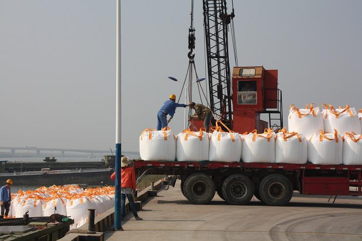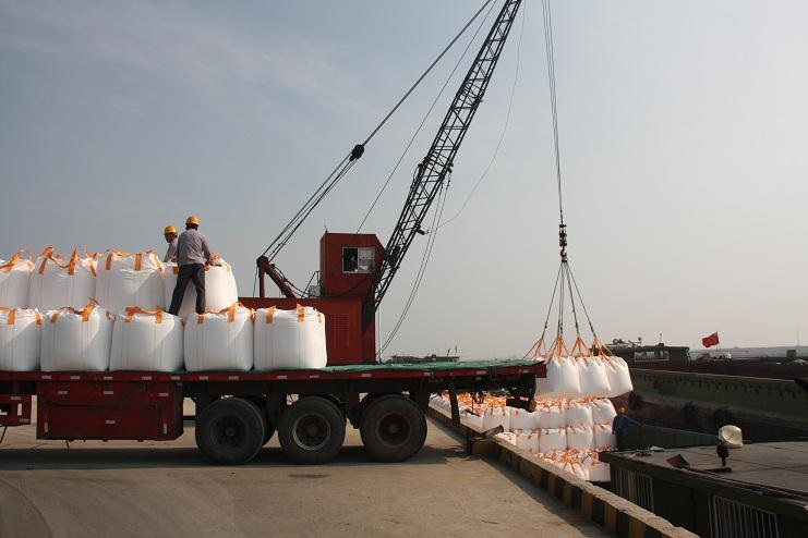 4月30日上午9時許,隨著一聲汽車長笛,一輛載有近40噸化工物資的卡車徐徐停靠在宵洋物流公司五灌河碼頭邊,緊接著碼頭鐵臂起舞,機(jī)械操作工嫻熟地操縱著塔吊機(jī)械,準(zhǔn)確地將一包包噸貸物資裝卸在碼頭邊的貨船中。。。。。。自此,一輛輛滿載40余噸貨物的卡車源源不斷向碼頭駛來。