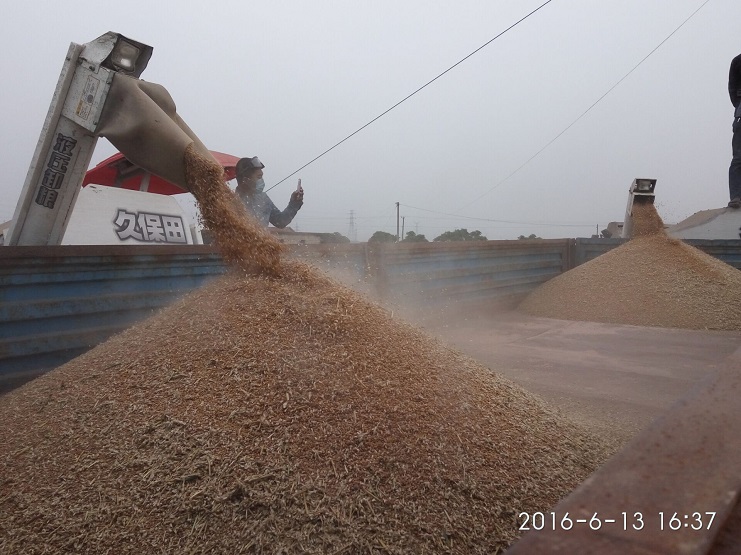 他立即會(huì)同農(nóng)業(yè)分公司的全體員工,開(kāi)赴地頭,搶收小麥。聯(lián)合收割機(jī)馬力開(kāi)足,看著一壟壟小麥被收割完,看著一袋袋小麥被裝運(yùn)上車,該公司參加搶收人員仍然忙碌著。天黑了,他們打開(kāi)車燈和手提電燈,頂著高溫、忍受著蚊蟲的叮咬,目標(biāo)只有一個(gè),在雨到來(lái)前一定要完成小麥搶收任務(wù)。