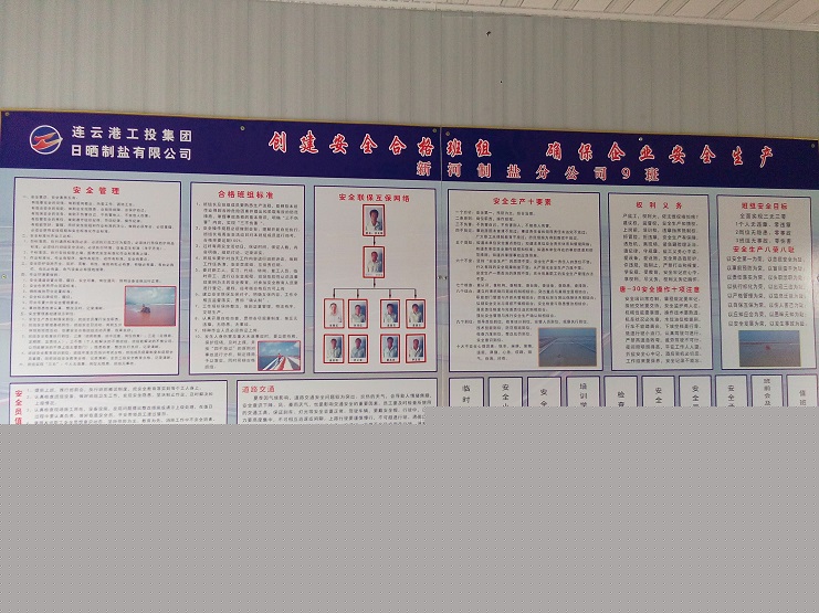 10月21日上午,連云港工投集團安全部胥廣會總監(jiān)一行三人,在灌西投資公司運營部李長軍部長的陪同下,對新河制鹽分公司9班安全軟硬件臺賬,班組設(shè)備安全,班組制鹽工、扒鹽工、維護工崗位職責(zé),各種操作規(guī)程等進行初步檢查驗收。胥總監(jiān)認為,9班班組安全硬件設(shè)施到位,各種崗位操作規(guī)程齊全,不同崗位職責(zé)明確,是我到基層單位檢查班組安全硬件設(shè)施想像不到的好。他同時指出班組安全臺賬還需進一步增補。他們一行3人,當看到新河9班班組生產(chǎn)工具、勞保護具,值班室生活設(shè)施,上下班佩戴的頭盔,擺放整齊劃一時,滿意地說,就這樣好,有安全合格班組的模樣。(新河制鹽)