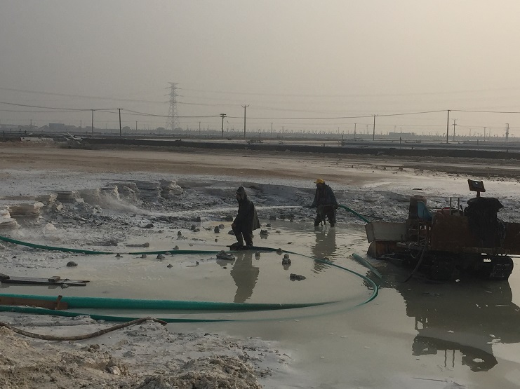 1月12日,在日曬制鹽新河分公司1班,除硫的各項工作正在有條不紊地運行著,除硫操作手緊握高壓水槍,對硫酸鈣沉淀區(qū)進行沖刷。眼下正是除硫工作的黃金時期,但是因今年過年時間比往年早,扒鹽工作也較往年提前,時間緊、人員缺、任務(wù)重,新河制鹽分公司迎難而上,緊抓有利天時,合理用工統(tǒng)籌,將后勤維護人員安排到有需要的班組,解放班組現(xiàn)有勞動力,廣大干群放棄節(jié)假日的休息,加班加點,加快推進除硫進度,爭取在年前完成除硫工作。讓廣大員工讀過一個祥和、安逸的春節(jié)。截止發(fā)稿日期,已完成3個洼站的除硫工作,另外4塊的除硫工作在周六周日能順利完成。(新河制鹽邱利民)
