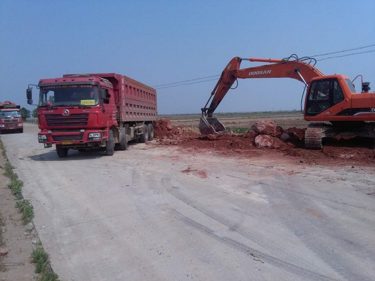 坐落在西旺水產(chǎn)公司農(nóng)田區(qū)域內(nèi)的其中的8個風(fēng)力發(fā)電機建設(shè)項目,經(jīng)過公司相關(guān)人員的協(xié)調(diào)和建設(shè)方人員的共同努力,項目建設(shè)的各項工作進展順利。日前,項目建設(shè)已正式進入項目施工環(huán)節(jié)。圖為運載車輛進行鋪建便道施工工程中(西旺宣)