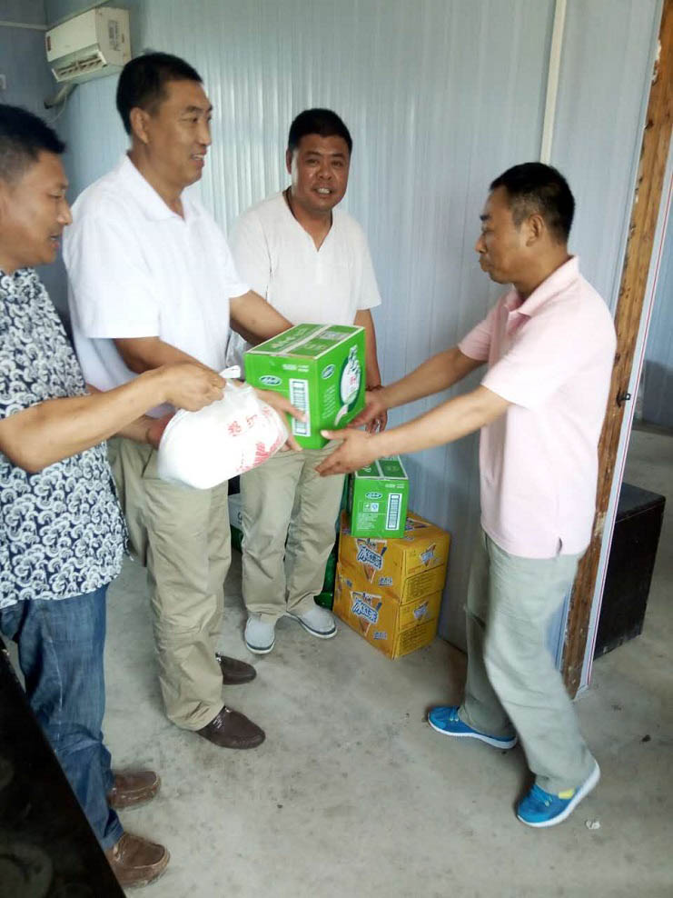 由于近日連續(xù)高溫,西旺水產(chǎn)公司認真做好防暑降溫工作。一是及時調(diào)整池塘值班點上的人員作息時間,避開高溫時段,備好了兩套防暑藥物盒;二是加強對養(yǎng)殖戶夏季安全生產(chǎn)、防暑預(yù)防、中暑急救等知識的宣傳;三是開展“送清涼”工作,發(fā)放防暑降溫費、購買防暑物品送到一線員工手里,表示慰問。圖為到西旺公司領(lǐng)導(dǎo)到一線為員工送上防暑物品。(西旺工會)