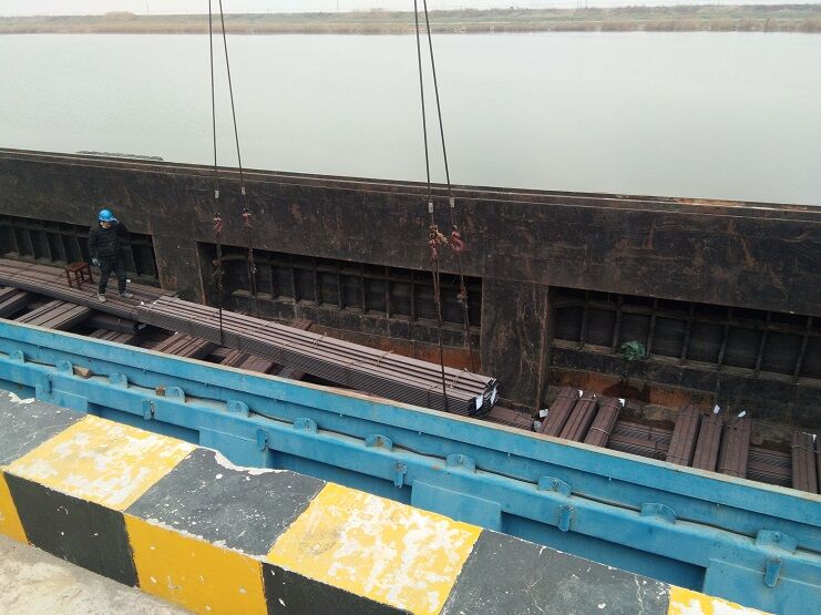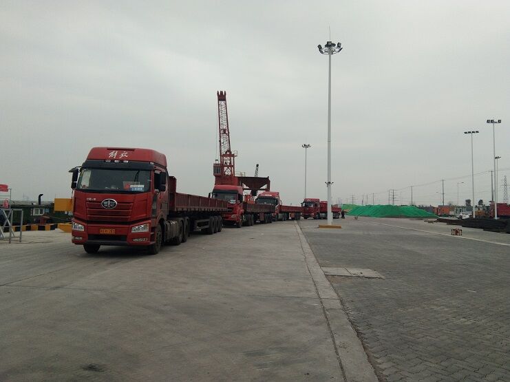隨著江蘇省境內(nèi)復產(chǎn)復工的開始,省內(nèi)道路交通逐漸恢復,宵洋物流公司抓住戰(zhàn)機,積極發(fā)展客戶。裝載著彈簧扁鋼特種鋼材的車輛絡繹不絕地駛入碼頭,直接裝船。這將大幅度降低碼頭倉儲壓力,提高碼頭的運轉能力。這也是碼頭首次鋼材進行船運,打破以往車輛運送貨物的局限性,大大增加碼頭的吞吐量。