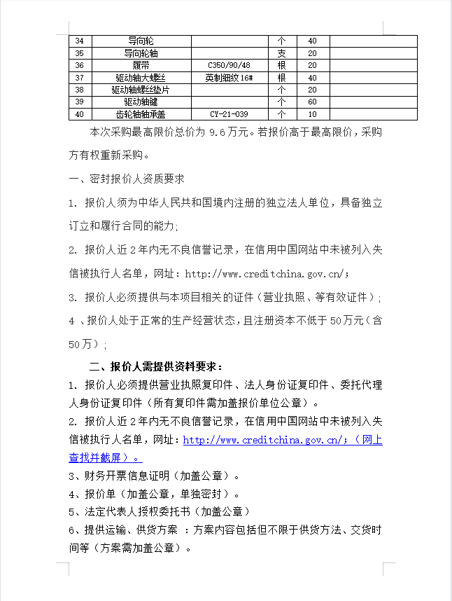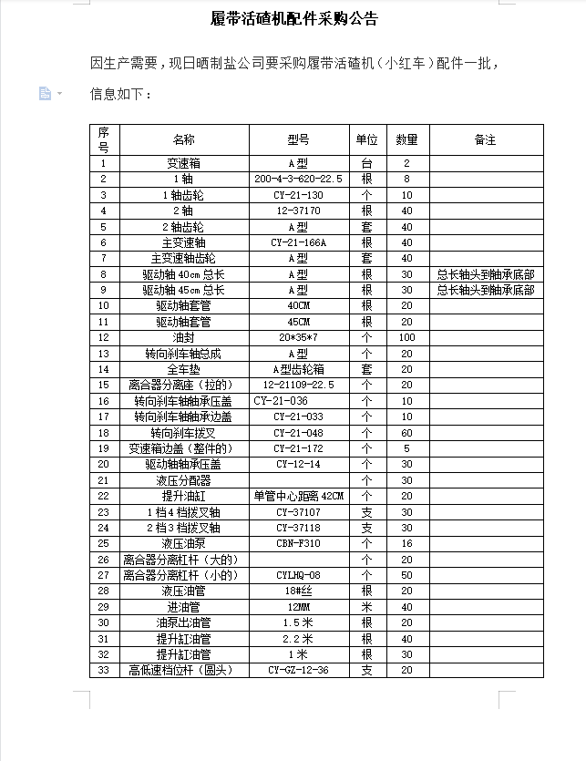 履帶活碴機(jī)配件采購(gòu)公告