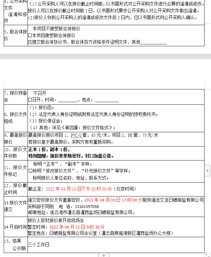 密封報(bào)價(jià)開啟時(shí)間及地點(diǎn):2022年04月21日前,如有特殊情況時(shí)間另行通知。