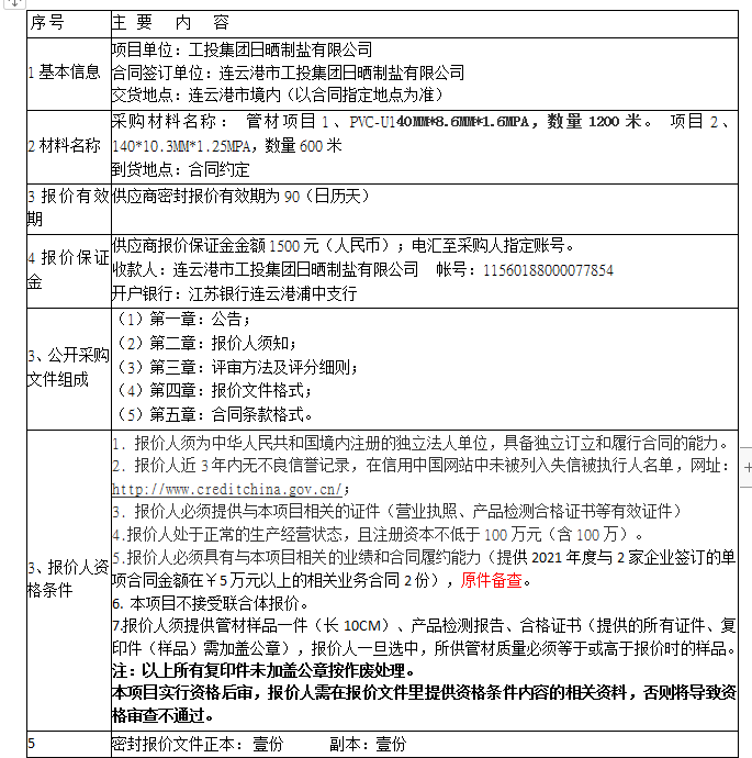 2.項(xiàng)目名稱:管材采購項(xiàng)目