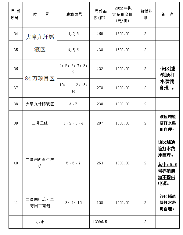 根據(jù)連云港市工業(yè)投資集團有限公司關(guān)于資產(chǎn)租賃相關(guān)文件精神的要求及本公司淡水養(yǎng)殖池塘實際情況,經(jīng)灌西投資公司池塘租賃領(lǐng)導(dǎo)小組研究,報請集團公司同意,2022年現(xiàn)對下述養(yǎng)殖池塘公開對外競租。