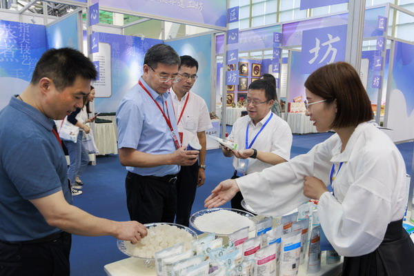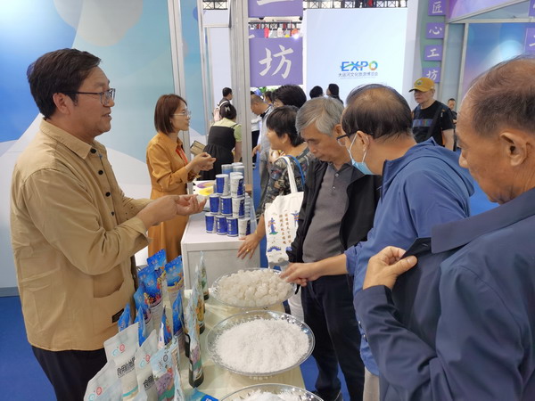 我公司代表集團(tuán)參加本次展會(huì),展示加碘精制鹽、顆粒鹽、雪花鹽、低鈉鹽等“古淮”“猴王”品牌的20余個(gè)食鹽品種,共接待2000多人次參觀。期間,省文旅廳黨組成員、副廳長(zhǎng)錢(qián)鋼等蒞臨展位觀摩指導(dǎo),對(duì)公司淮鹽文化傳承工作予以肯定。