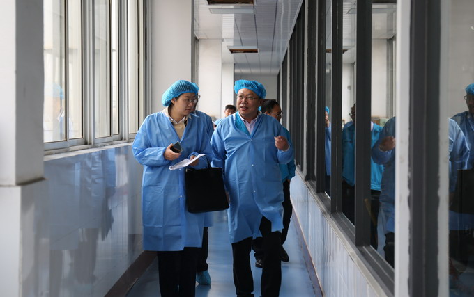 10月15日上午,連云港市市場(chǎng)監(jiān)督管理局食品生產(chǎn)處副處長(zhǎng)梁晶晶、顧為民帶領(lǐng)檢查員一行來(lái)我公司開展食鹽定點(diǎn)生產(chǎn)企業(yè)日常監(jiān)督檢查和飛行檢查。公司董事長(zhǎng)、黨委書記、總經(jīng)理朱桂玉,副總經(jīng)理田磊、何啟明陪同。
