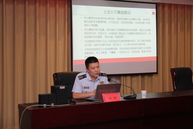 為規(guī)范消防安全管理,提高公司干部職工消防安全意識(shí)和火災(zāi)應(yīng)急處置能力,7月7日,我公司邀請(qǐng)連云區(qū)消防隊(duì)副隊(duì)長(zhǎng)唐燁,在三樓會(huì)議室開(kāi)展消防安全知識(shí)培訓(xùn)。公司董事長(zhǎng)、黨委書記、總經(jīng)理朱桂玉,黨委副書記、工會(huì)主席曹開(kāi)明,副總經(jīng)理何啟明,總經(jīng)理助理李忠祥,各單位、車間、部室人員參加了培訓(xùn)。