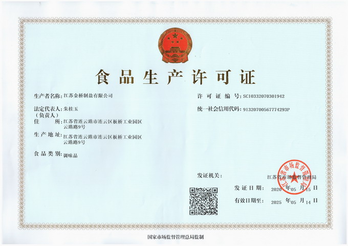 5月15日,我公司順利獲得《食品生產(chǎn)許可證》,成為江蘇省第一家獲得《食品生產(chǎn)許可證》的國(guó)家食鹽定點(diǎn)生產(chǎn)企業(yè)。