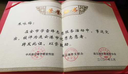 參加疫情防控志愿服務(wù)以來(lái),朱詠梅一天都沒(méi)有休息,已為超過(guò)2萬(wàn)名旅客檢測(cè)體溫。由于事跡突出,在全市學(xué)雷鋒志愿服務(wù)活動(dòng)中,被評(píng)為連云港市優(yōu)秀志愿者。工作期間,渴了不敢喝水,餓了就吃泡面,雖然很辛苦,但是她覺(jué)得很自豪,她說(shuō):“我是一名預(yù)備黨員,也是一名國(guó)企職工,比起那些奮戰(zhàn)在疫情防控一線(xiàn)的醫(yī)務(wù)人員,我做的太少了;當(dāng)前,全國(guó)人民都投入到新冠肺炎疫情防控工作中來(lái),我只是為防控工作貢獻(xiàn)了自己的微薄的力量,我相信只要我們團(tuán)結(jié)一心、眾志成城,就一定能早日戰(zhàn)勝疫情,早日打贏這場(chǎng)沒(méi)有硝煙的戰(zhàn)爭(zhēng)!(凌家佳)