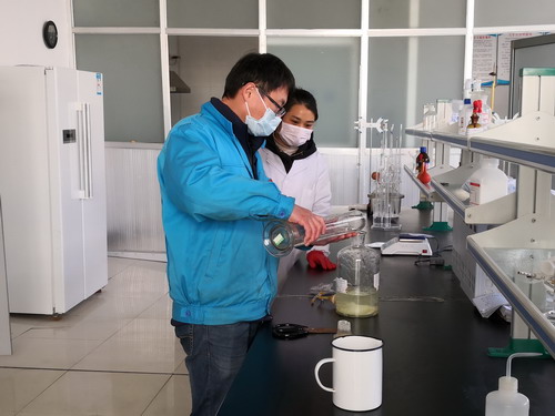 疫情防控期間,化驗室認真落實公司防控工作要求,每天配制75%濃度的乙醇,每天配制84消毒液約200L,配制二氧化氯消毒液1000余升,供全公司及外來車輛消毒。車間復(fù)工復(fù)產(chǎn)后,全體化驗員堅守崗位,做好產(chǎn)品檢測工作。每日做好進廠原料的檢驗,并按頻次抽檢車間生產(chǎn)的半成品及成品,每個班次抽檢樣品200個左右,質(zhì)管部認真做好每天出廠產(chǎn)品的檢驗。雖然工作量有所增加,但他們沒有任何怨言,立足崗位、勇于擔(dān)當(dāng),落實好疫情防控工作要求的同時,嚴把產(chǎn)品質(zhì)量關(guān)。