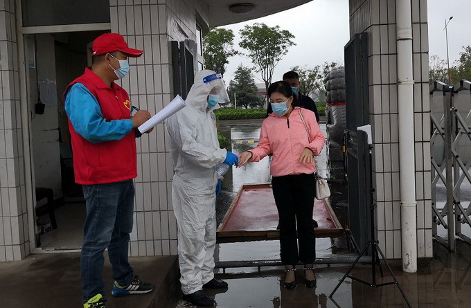 機(jī)關(guān)部室志愿者配合做好體溫測量、消毒及進(jìn)出人員登記
