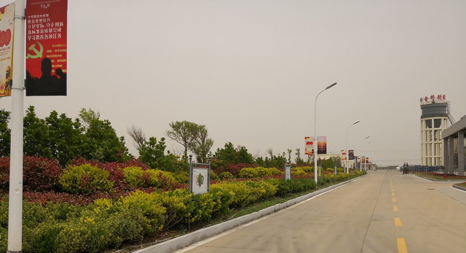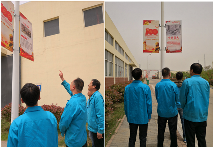 利用廠區(qū)路燈桿設計制作黨史學習畫報