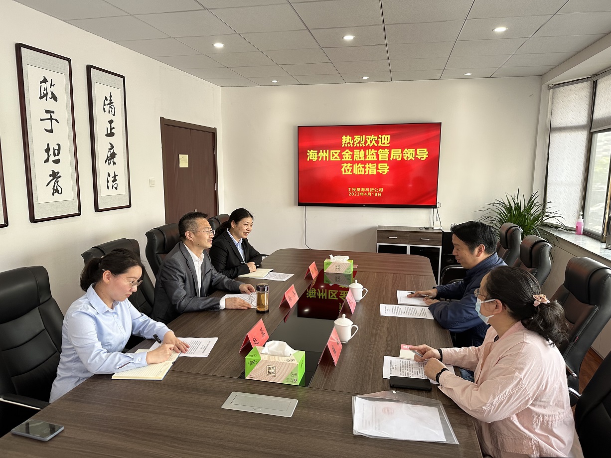 4月18日下午,海州區(qū)金融監(jiān)管局副局長萬利軍、崔敏一行蒞臨工投科貸公司調(diào)研指導(dǎo)。