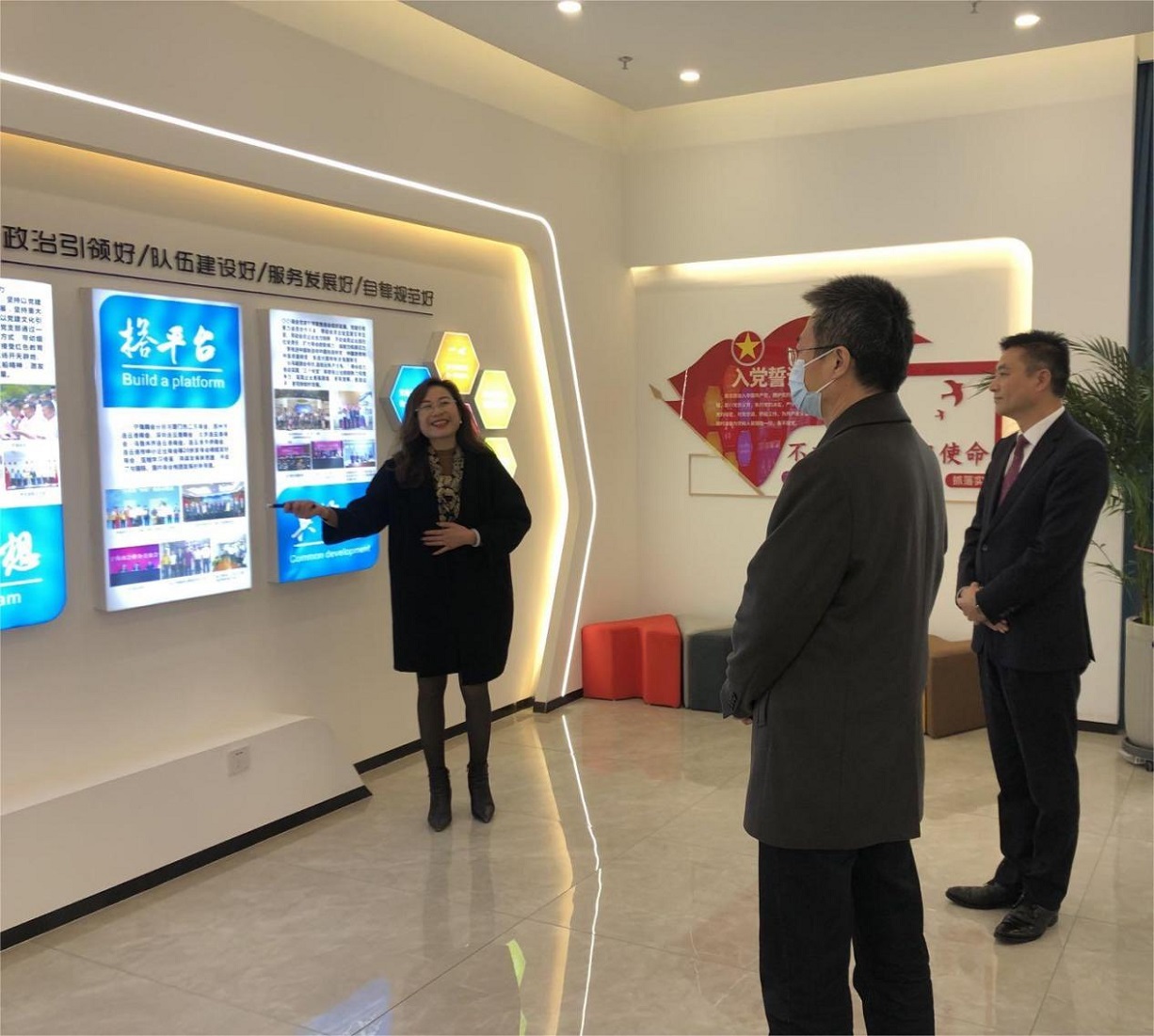 會(huì)上,徐兵董事長(zhǎng)聽取了商會(huì)會(huì)長(zhǎng)陳愛明及會(huì)員企業(yè)的簡(jiǎn)單介紹,并實(shí)地參觀了商會(huì)的駐地企業(yè)、黨建活動(dòng)室,充分了解商會(huì)企業(yè)的發(fā)展困境及融資訴求。