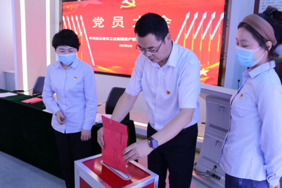 為了迎接建黨101周年和二十大的召開,落實好黨組建設,強化黨員干部不忘初心、牢記使命的責任感和使命感,牢固樹立黨員先鋒模范意識。資產公司黨支部6月14日召開迎“七一”黨員大會。預備黨員轉正,重溫入黨誓詞,表彰“最美逆行者”黨員大會。大會由資產公司黨支部書記徐兵主持,支部班子成員、全體黨員及部分員工代表參加。 大會在雄壯的《國際歌》中開幕。