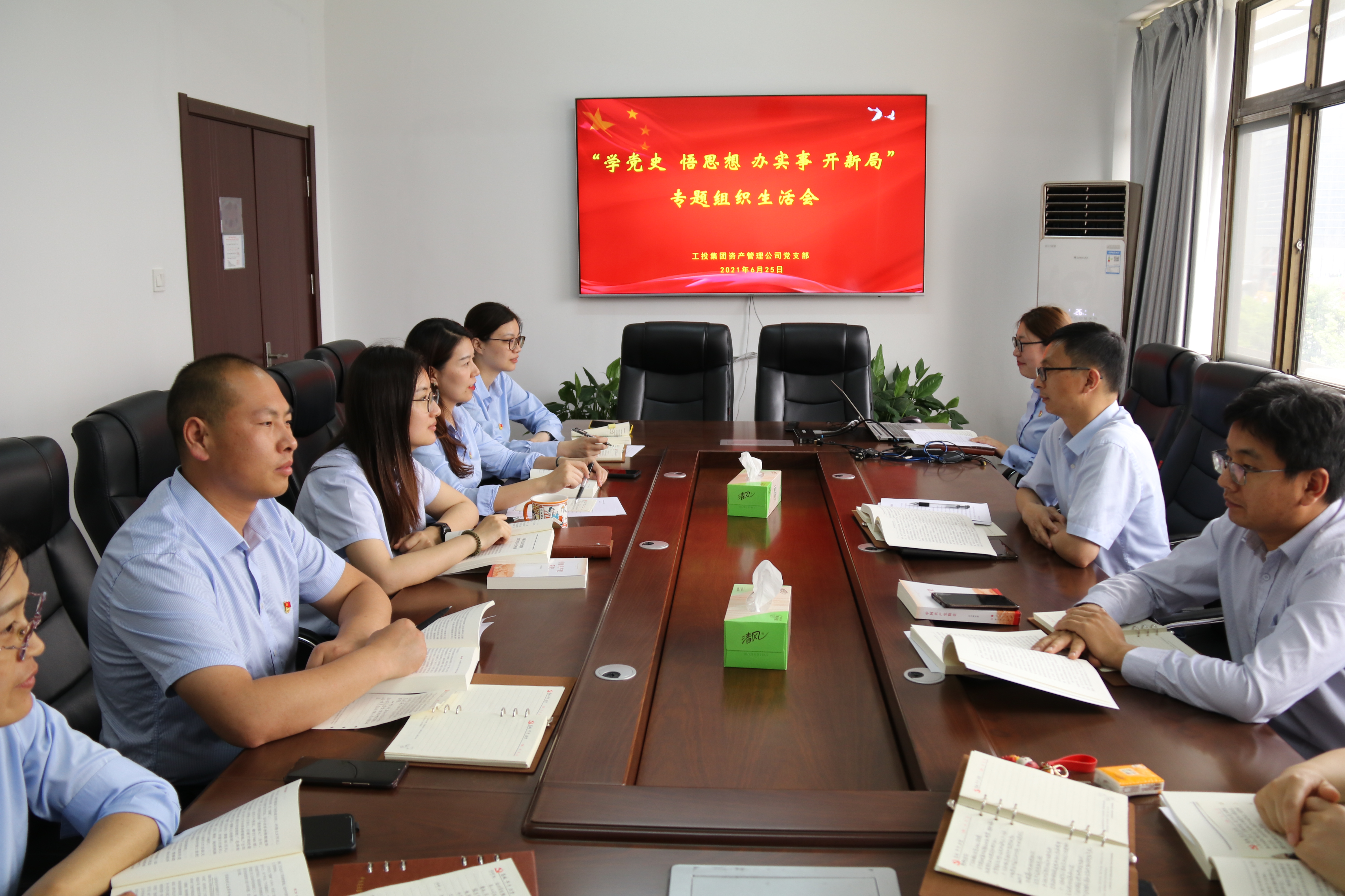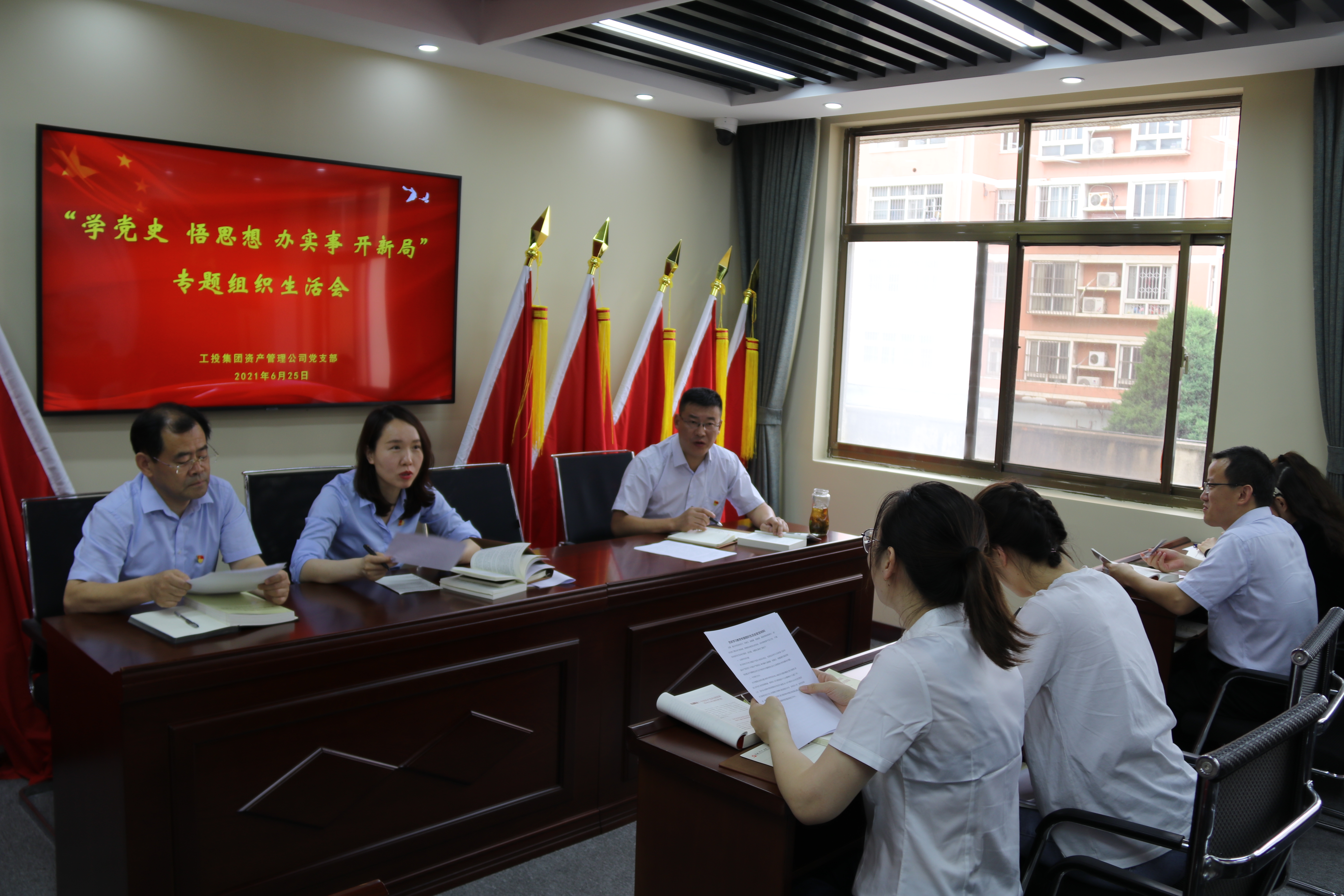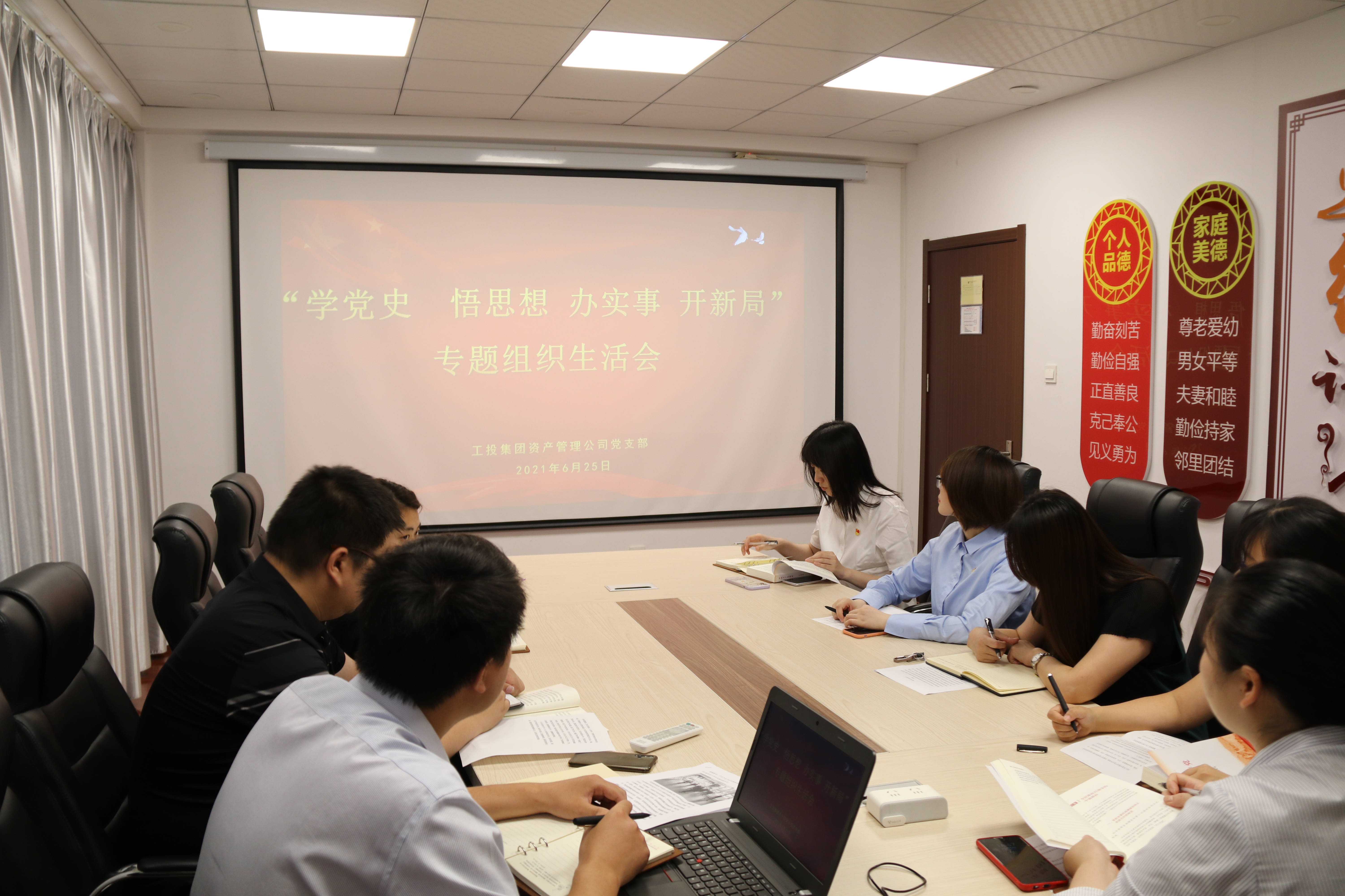 |     根據(jù)集團黨委、公司黨支部黨史學習教育工作安排,6月25日,資產(chǎn)管理公司黨支部以“學黨史 悟思想 辦實事 開新局”為主題召開專題組織生活會。會議分四個黨小組開展,支委領(lǐng)導分赴各黨小組,以普通黨員身份開展黨性分析,一起學習討論、一起交流心得、一起接受思想教育。