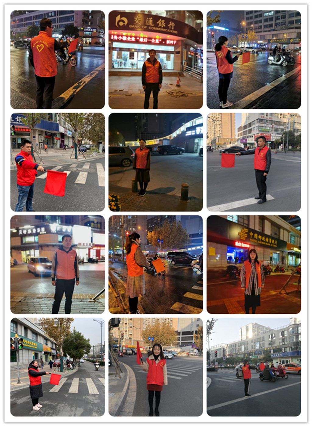 11月16日—11月17日,青年志愿者分四批次,分別于早上8:00—9:00和下午5:30—6:30準(zhǔn)時(shí)到達(dá)巨龍南路86號(hào)十字路口參加文明交通指揮活動(dòng)。已過(guò)立冬,天氣特別寒冷,周末的清晨看不到交警的身影,只能看到幾名穿著紅馬甲的青年志愿者在寒風(fēng)中堅(jiān)定不移的拿著小紅旗站在斑馬線(xiàn)旁邊指揮行人安全過(guò)馬路。 下午5時(shí)30分,天色已漸漸的暗淡下來(lái),但青年志愿者們并沒(méi)有缺席或早退,天空忽然下起了雨,穿著紅馬甲的青年志愿者在路燈的映襯下,與飄斜的細(xì)雨形成一道亮麗的風(fēng)景線(xiàn)。 本次志愿服務(wù)活動(dòng)持續(xù)了兩天,青年志愿者們犧牲自己周末的休息時(shí)間,身體力行,通過(guò)參與“文明交通”志愿者服務(wù)活動(dòng),保證了服務(wù)片區(qū)的交通秩序,為港城創(chuàng)文創(chuàng)衛(wèi)工作貢獻(xiàn)一份力量。 (蔣禮巧) |