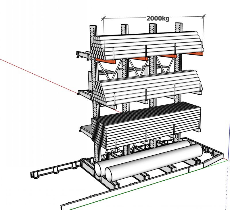 單層載重2000kg,我們設(shè)計(jì)為4個(gè)懸臂。每根懸臂載重500kg