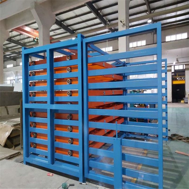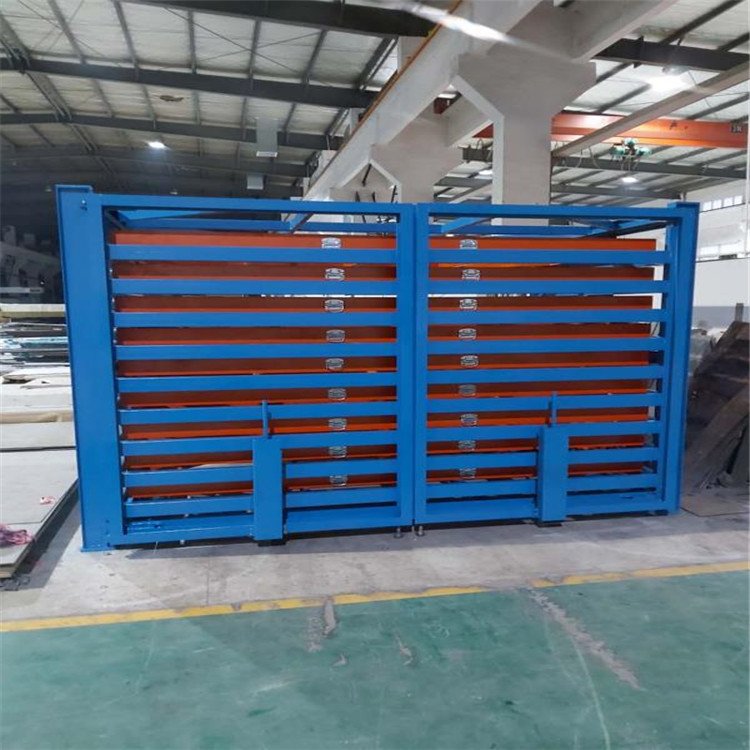 金屬板材存放貨架 板材堆放架工程項目 節。汗澥〈罅繌S房空間,抽屜式結構,可以15層存放,占地空間小,存儲量高。鋼板可以分層分類的存放在同一組貨架上,幾十種規格尺寸材質的鋼板存放在貨架上,瞬間廠房變得寬敞 整齊 明亮,抽屜式結構不需要叉車不需要工業巷道。天車存放節省人力,單人可以完成所有的操作,存取速度快,節省時間。 安全:鋼板存放在地面上占用的空間大,各種規格的鋼板都堆放在一起雜亂無章,容易磕磕絆絆,上面的鋼板還容易滑動,存在安全隱患,鋼板比較鋒利,人工存取還容易劃傷操作者,存在人員安全隱患。鋼板存放架還可以保護板材,防止鋼板在運輸中帶來損耗,特別是貴重金屬板材防止劃傷 刮傷 卷邊等情況的發生。 方便:鋼板存放架采用抽屜式結構,每層抽屜單獨拉出,方便鋼板的存取,特別是中間的鋼板也可以直接存放,不受上層或下層鋼板抽屜的影響,讓存取使用更方便。抽屜高標準拉出,操作方便。 快捷:鋼板存放架使用天車存放鋼板,存取速度快捷,鋼板直接存取,幾十種鋼板擺放在不同的抽屜里,貨物一名了然,不用浪費過多的時間,快速的存放所有使用的鋼板,不用反復整理挪動,讓廠房空間迅速寬敞起來。