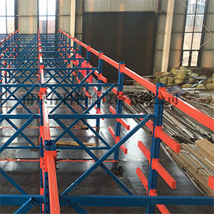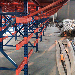 懸臂式貨架適用于存放長物料、環型物料、板材、管材及不規則貨物。懸臂式貨架立柱多采用H型鋼或冷軋型鋼,懸臂采用方管、冷軋型鋼或H型鋼,懸臂與立柱間采用插接式或螺栓連接式,底座與立柱間采用螺栓連接式,底座采用冷軋型鋼或H型鋼。貨物存取由叉車、行車或人工進行。