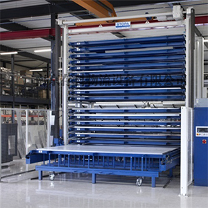 平放板材貨架,采用的是抽屜式結構,分類清楚,盤點方便,每層抽屜可承載板材的重量在三噸。利用吊車存取板材,減少損耗和浪費,節省人工成本的投入