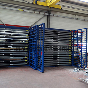 平放板材貨架,采用的是抽屜式結構,分類清楚,盤點方便,每層抽屜可承載板材的重量在三噸。利用吊車存取板材,減少損耗和浪費,節省人工成本的投入