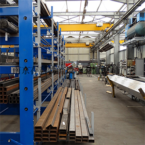 懸臂式貨架適用于存放長物料、環型物料、板材、管材及不規則貨物。懸臂式貨架立柱多采用H型鋼或冷軋型鋼,懸臂采用方管、冷軋型鋼或H型鋼,懸臂與立柱間采用插接式或螺栓連接式,底座與立柱間采用螺栓連接式,底座采用冷軋型鋼或H型鋼。貨物存取由叉車、行車或人工進行。