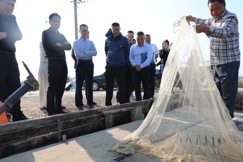 一把旋網(wǎng)撒進(jìn)池塘,捕撈起肥美的魚蝦。在三洋分場生態(tài)養(yǎng)殖示范崗,生態(tài)養(yǎng)殖帶頭人姜偉介紹當(dāng)前養(yǎng)殖情況,觀摩組通過看水產(chǎn)品、聽匯報,深入了解生態(tài)養(yǎng)殖示范崗的創(chuàng)建成效。