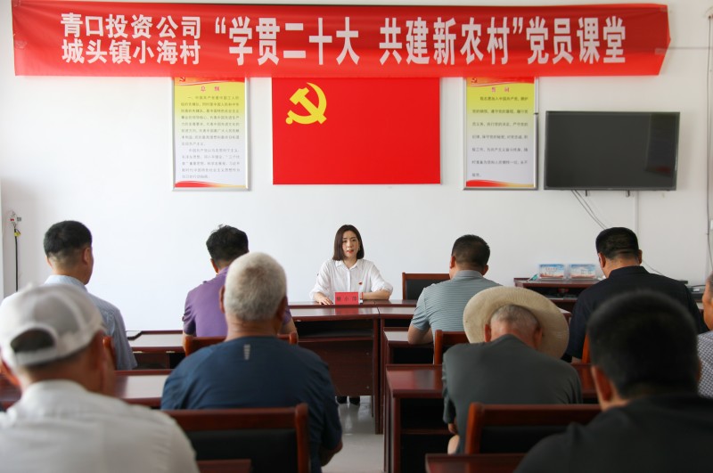 為推動(dòng)黨的二十大精神在鄉(xiāng)村落地生根,6月28日上午,青口投資公司、城頭鎮(zhèn)小海村聯(lián)合開(kāi)展“學(xué)貫二十大 共建新農(nóng)村”黨員課堂,由公司機(jī)關(guān)優(yōu)秀黨務(wù)干部組成的二十大精神宣講隊(duì),走進(jìn)結(jié)對(duì)共建的贛榆區(qū)城頭鎮(zhèn)小海村開(kāi)展集中式、通俗化宣講。公司黨委副書(shū)記、工會(huì)主席梁永,城頭鎮(zhèn)副鎮(zhèn)長(zhǎng)王延光,城頭鎮(zhèn)小海村支部書(shū)記徐坤參加活動(dòng)。