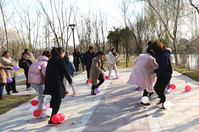 為使大家身心得到最大放松,投入戶外體驗清新大自然,在絲路小鎮(zhèn)公園進行了“三月女人天 別樣婦女節(jié)”主題戶外活動。游戲“你畫我猜”中,隊員們有的配合默契一猜既中,也有的用肢體艱難的比劃著,引的大家捧腹大笑?!安葰馇颉庇螒蚋亲尙F(xiàn)場氣氛達到沸點,每人都放開平日工作中的嚴謹,放松心情在場地上追逐奔跑。大家在游戲中收獲了歡聲笑語及片片感動,同時,通過游戲提高大家的合作意識和進取精神,營造濃郁節(jié)日氣氛。
