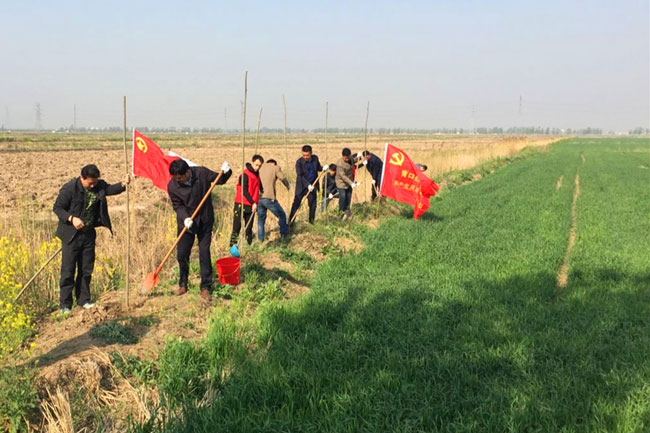 植樹(shù)活動(dòng)現(xiàn)場(chǎng),大家紛紛擼起衣袖,揮锨鏟土,填入樹(shù)苗,正苗澆水,培實(shí)新土,干的十分起勁,一片熱火朝天的勞動(dòng)景象。經(jīng)過(guò)一上午的緊張忙碌,種好的800余株白蠟樹(shù)苗一株株井然有序,迎風(fēng)挺立,在明媚的春光中展現(xiàn)出勃勃生機(jī),為植樹(shù)現(xiàn)場(chǎng)增添一片新綠。