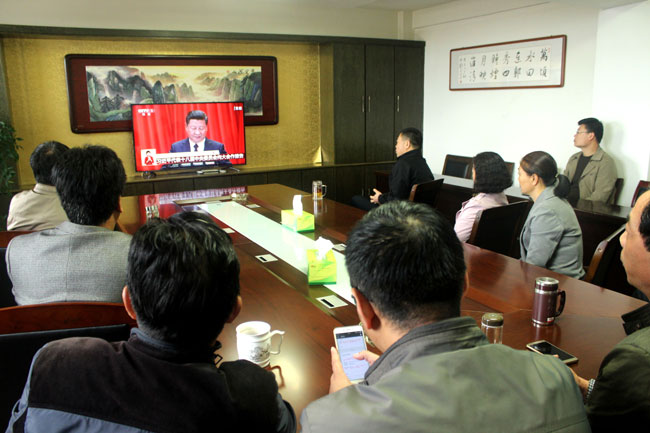 大家早早就集中到各收看點(diǎn),做好收看準(zhǔn)備。報(bào)告伊始,大家聚精會(huì)神,仔細(xì)聆聽報(bào)告內(nèi)容,并不時(shí)做著記錄。大家一致認(rèn)為黨的十九大是在全面建成小康社會(huì)決勝階段、中國特色社會(huì)主義進(jìn)入新時(shí)代的關(guān)鍵時(shí)期召開的一次十分重要的大會(huì),會(huì)議的召開是全黨、全國各族人民政治生活中的一件大事。習(xí)近平總書記所作的報(bào)告全面總結(jié)了黨的十八大以來治國理政的輝煌成就和寶貴經(jīng)驗(yàn),展望了新時(shí)代中國共產(chǎn)黨的歷史使命、新時(shí)代中國特色社會(huì)主義思想和基本方略。習(xí)近平總書記的報(bào)告高瞻遠(yuǎn)矚,氣勢(shì)恢宏,總攬全局,振奮人心。