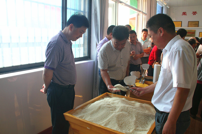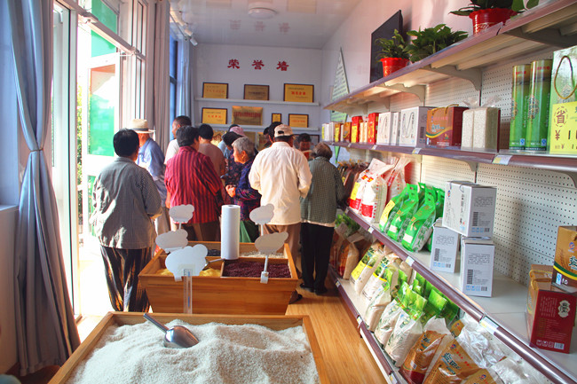 展銷中心主要展示銷售公司“鹽田玉”系列產(chǎn)品,清香米、富硒米、喜米等不同種類規(guī)格大米均在展銷之列,極大方便了周邊居民選購。