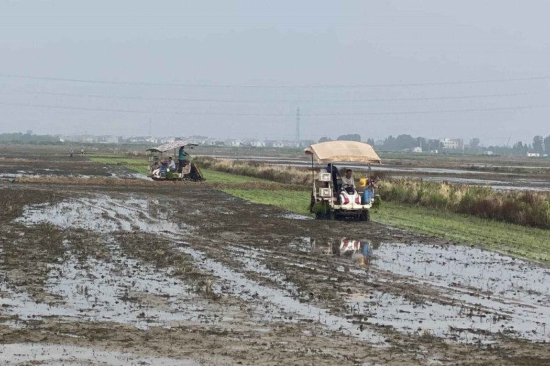 近日,大新農(nóng)場(chǎng)搶抓有利天時(shí),與農(nóng)科院合作的新品種水稻啟動(dòng)插秧作業(yè),機(jī)器手正熟練地操作插秧機(jī)在稻田里穿梭,一撮撮青翠的秧苗被整齊有序地插在水田里,呈現(xiàn)出一幅綠色生態(tài)畫卷。(王璐)