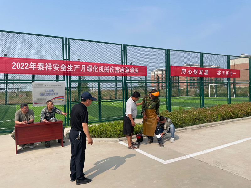 為了有效應對突發(fā)事件的處置能力,提高員工安全防范意識。6月22日下午,在泰祥門前小廣場舉行泰祥綠化機械傷害應急演練。