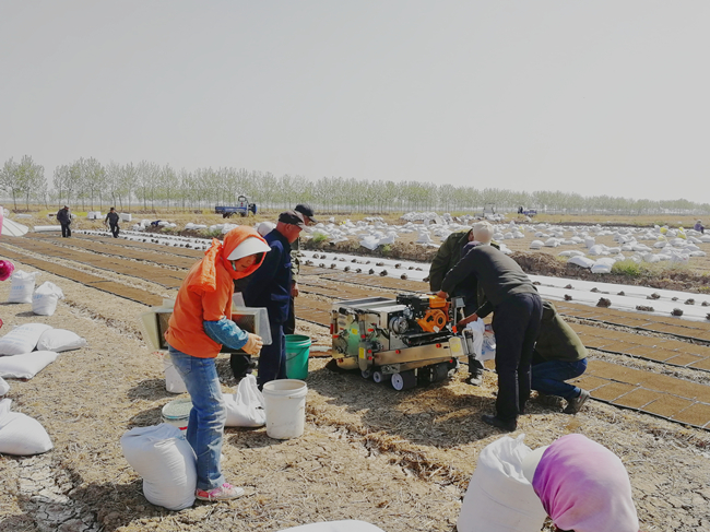 在科學(xué)浸種催芽、秧板田板面整平整細(xì)、適期精量播種的良好基礎(chǔ)上,今年繼續(xù)沿用地頭播地龍和大棚暗化相結(jié)合方式育秧,二分場7隊(duì)率先啟動了地頭播地龍育秧,暗化育秧已于4月24日開始浸種,計(jì)劃于28日播盤。(陳?。?/span>