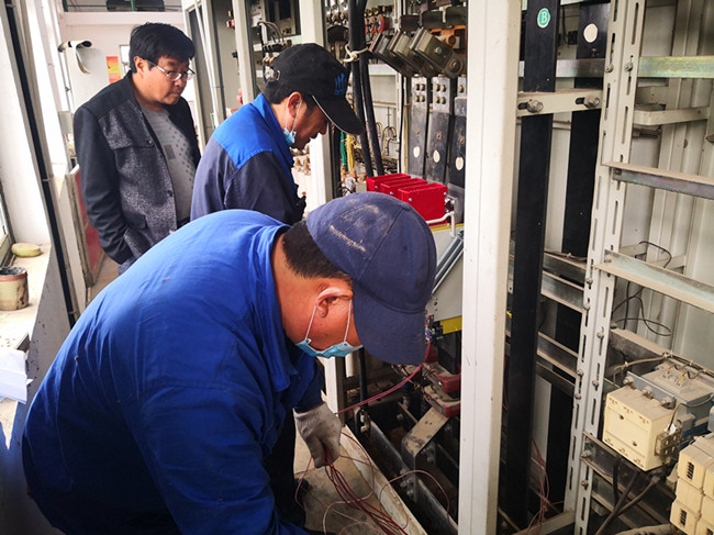 4月19日,生產(chǎn)生活服務(wù)中心特邀連云港市國瑞變壓器有限公司電氣工程師對三洋揚水站配電控制柜進行安全“體檢”。工程師們現(xiàn)場解決了部分老化的電氣元件問題,重新更換DW15-1600型萬能斷路器?!绑w檢”過后,工程師給予相關(guān)技術(shù)指導(dǎo)和意見,為揚水泵站安全運行提供了可靠的技術(shù)支持和設(shè)備保障。(服務(wù)中心)