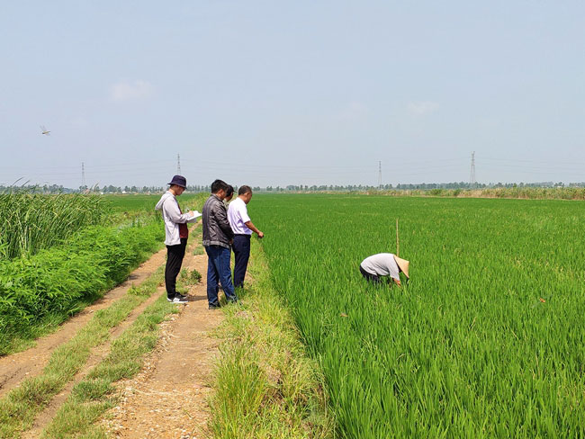 針對近期高溫高濕天氣,為做好水稻生產(chǎn)管理中期生產(chǎn)工作, 7月25日,農(nóng)場管理人員和農(nóng)技師頂著烈日深入田間地頭,對水稻基本苗的苗情苗量、病蟲害情況、中期水漿管理逐條田組進行水稻中期生產(chǎn)檢查,對下一步的水漿管理和綜合防治提出指導(dǎo)意見,要求適時擱田,并于7月底至8月上旬進行一次綜合防治。 (陳 ?。?/span>