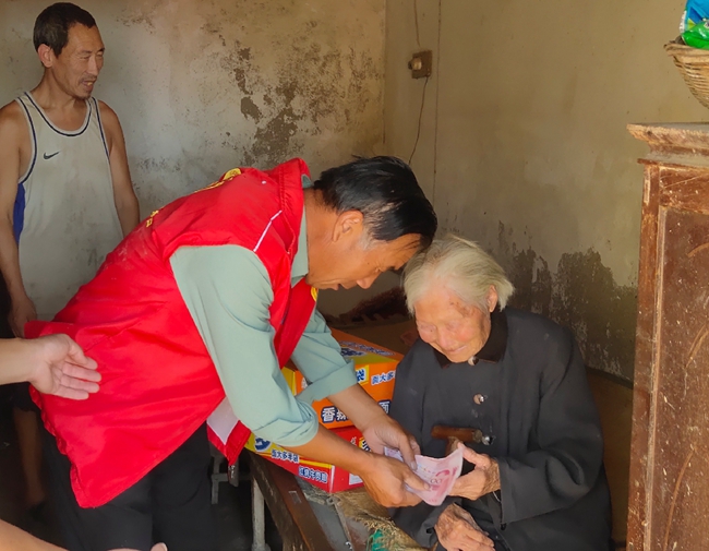 第二部分由支部組織志愿者小分隊到長期與智障兒子生活在一起、自身患病行動不便的困難戶熊秀美老人家中,開展打掃衛(wèi)生獻愛心活動。勞模黨員呂成業(yè)在參加打掃衛(wèi)生志愿活動的同時,個人購買300多元慰問品、捐助現(xiàn)金400元,對熊秀梅、莫排路母子進行愛心慰問。以實際心動踐行初心使命、黨性宗旨意識。讓困難職工群眾在切實感受到黨組織的關(guān)懷與溫暖的同時,黨員的先鋒模范作用得到進一步彰顯與闡釋。