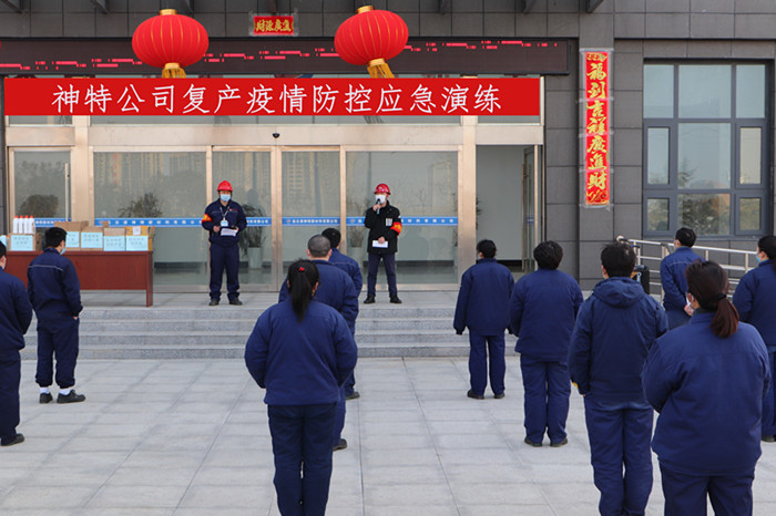2月26日,神特公司開展復(fù)產(chǎn)疫情防控應(yīng)急演練,進一步檢驗疫情防控成效,提升突發(fā)衛(wèi)生事件響應(yīng)和應(yīng)急處置能力。公司疫情防控領(lǐng)導(dǎo)小組全體成員,疫情應(yīng)急組、后勤保障組、醫(yī)療救護組各工作組成員,以及生產(chǎn)一線、機關(guān)后勤復(fù)產(chǎn)員工50余人參加了演練活動。