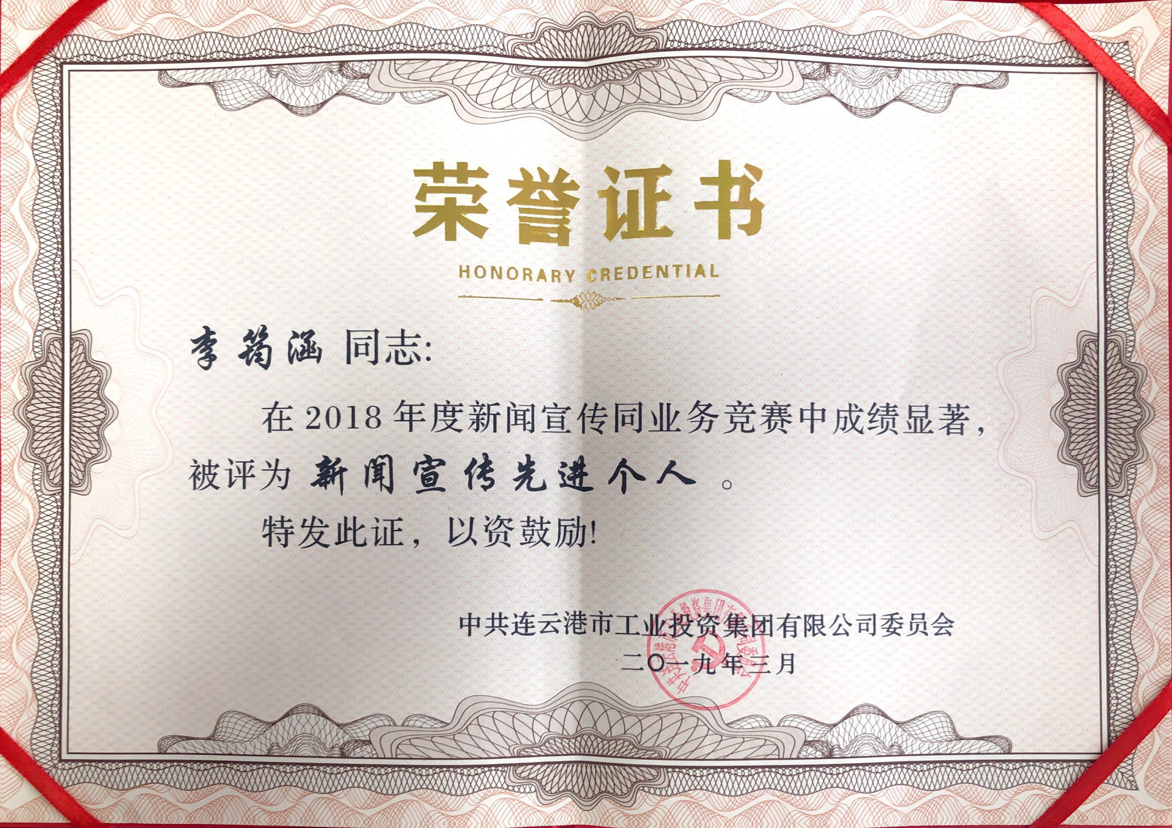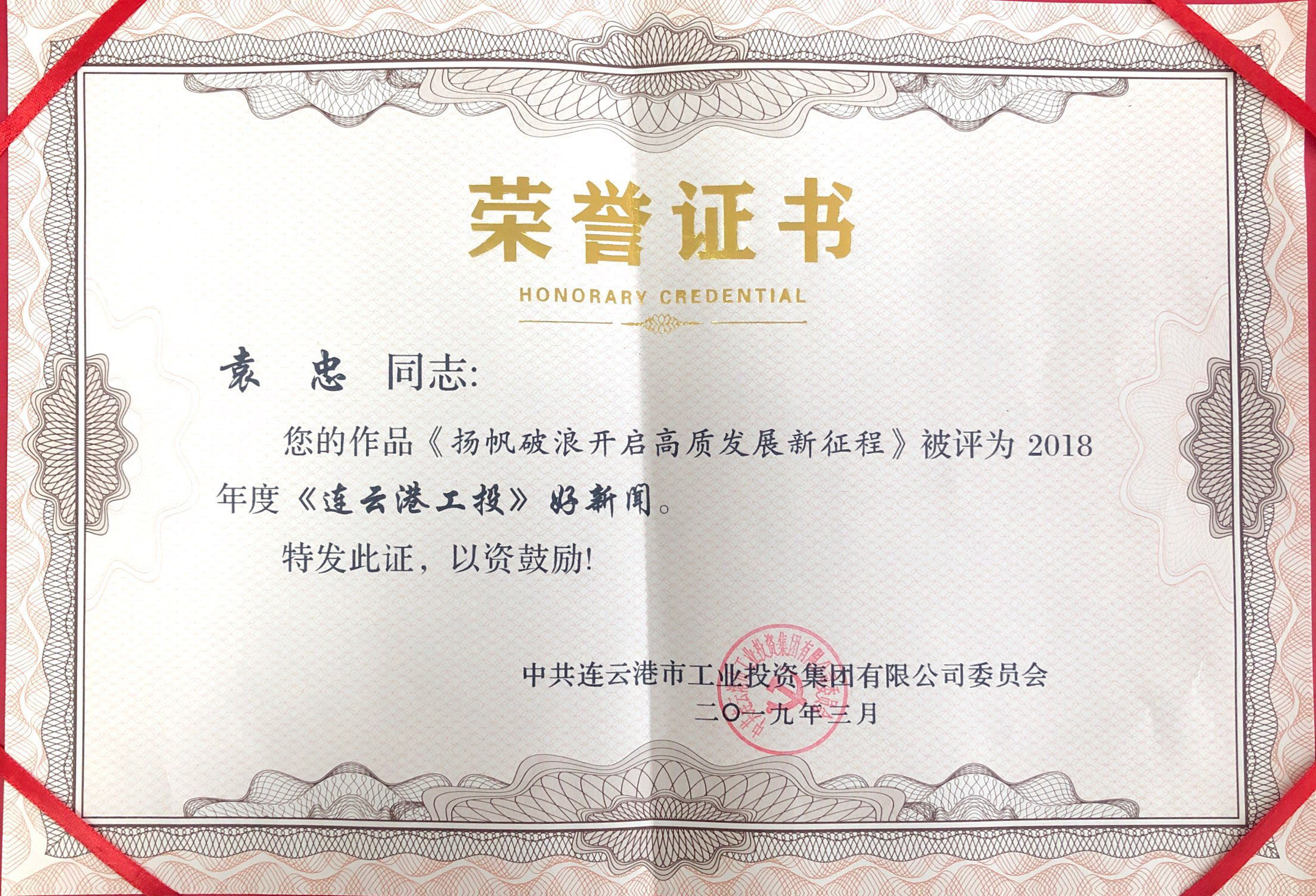3月15日下午,集團黨委召開了“聚焦高質(zhì)高效,聚力創(chuàng)新創(chuàng)優(yōu)”黨內(nèi)主題教育實踐活動部署推進會。會上,我公司被評為“2018年度新聞宣傳工作先進單位”;黨支部副書記袁忠所著評論文章《揚帆破浪開啟高質(zhì)發(fā)展新征程》,入選“2018年度《連云港工投》好新聞”;李筠涵獲得“2018年度新聞宣傳工作先進個人”稱號。